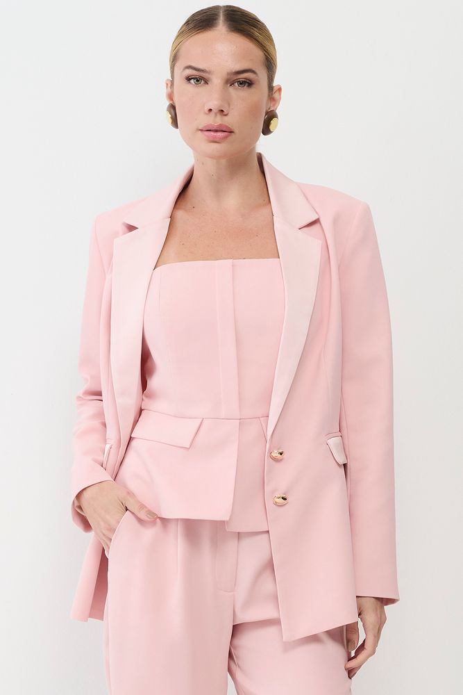 Blazer Alongado Feminino Com Lapelas SMK Rosa