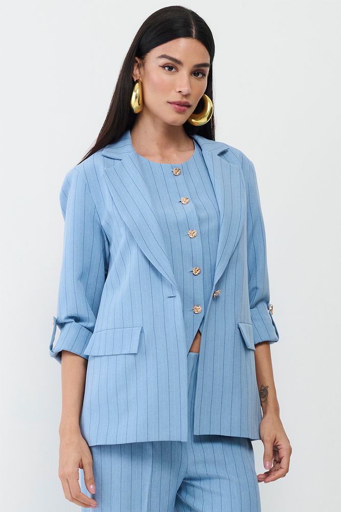 Blazer Feminino 3/4 Risca de Giz SMK Azul