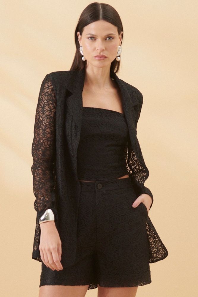 Blazer Feminino Renda Bordado Vazado Smk Preto