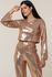 Tecido brilhante, essa blusa transforma qualquer produção em um visual marcante