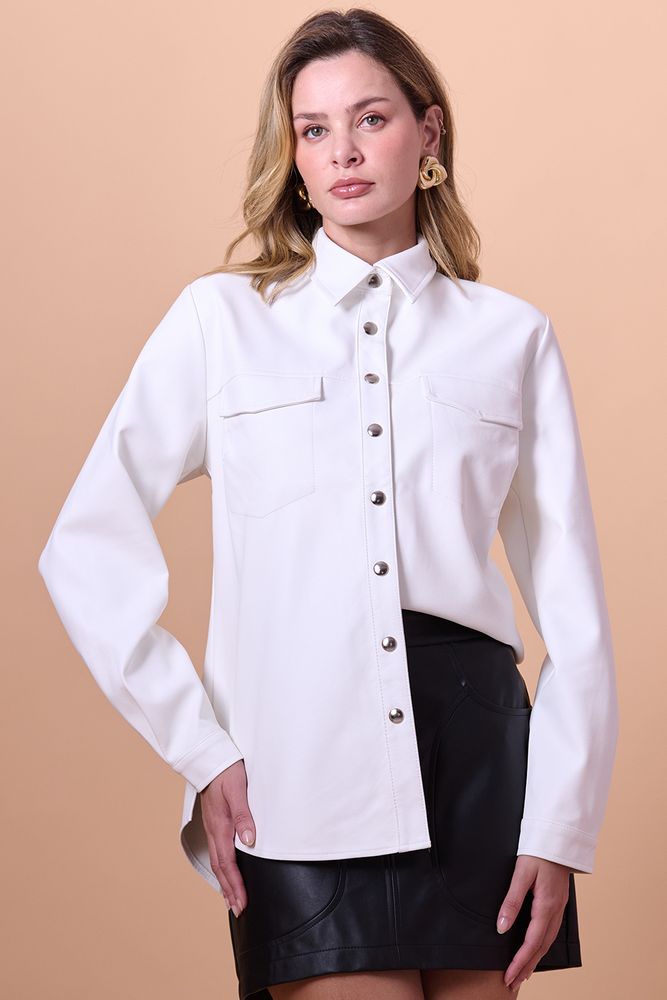 Camisa Feminina Couro Pu Manga Longa Smk Branco