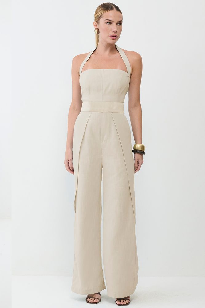 Macacão Feminino Frente Única Linen SMK Off White