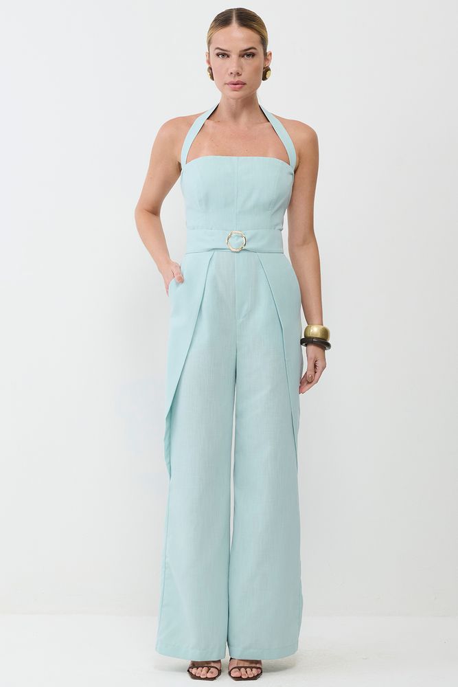 Este macacão combina elegância contemporânea com um frescor tropical, sendo a escolha perfeita para eventos diurnos sofisticados ou ocasiões especiais. A modelagem transmite leveza, enquanto o corte estruturado garante uma silhueta impecável.