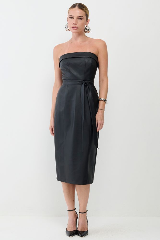 Vestido Sem Alça Couro PU SMK Preto